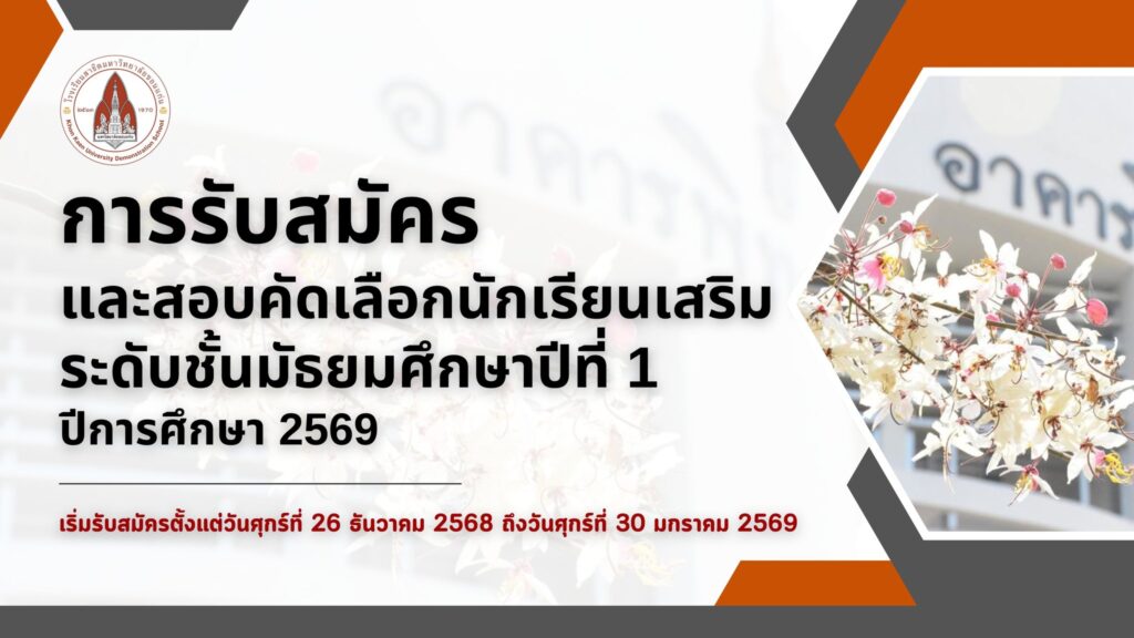 การรับสมัครและสอบคัดเลือกนักเรียนเสริมระดับชั้นมัธยมศึกษาปีที่ 1 ปีการศึกษา 2569