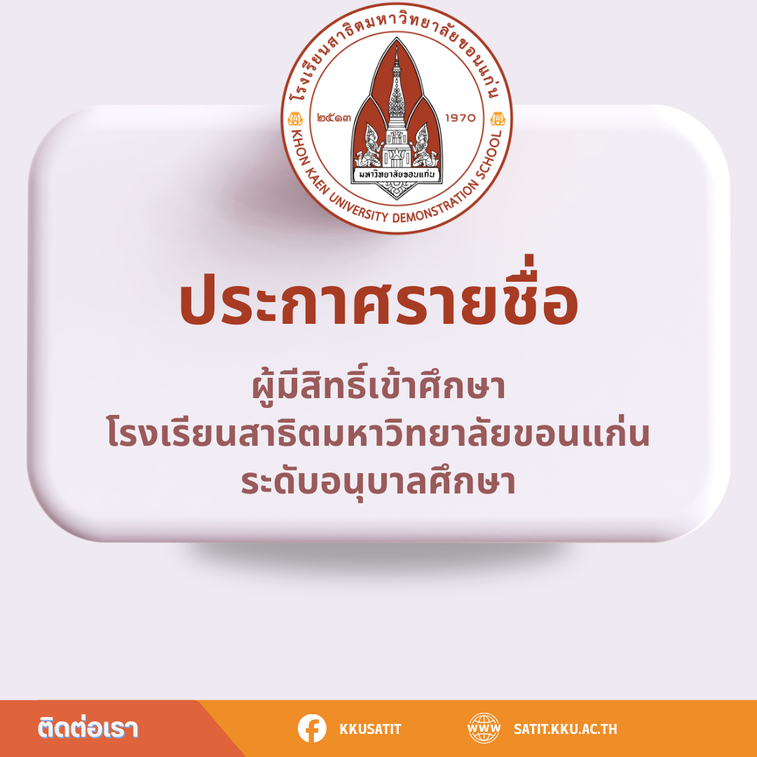 การรับสมัครและการสอบคัดเลือกนักเรียนดังกล่าวได้เสร็จสิ้นเรียบร้อยแล้ว จึงประกาศรายชื่อผู้มีสิทธิ์เข้าศึกษาในโรงเรียนสาธิตมหาวิทยาลัยขอนแก่น ฝ่ายอนุบาลศึกษา และ ฝ่ายนานาชาติ ระดับอนุบาลศึกษา ประจำปีการศึกษา 2569