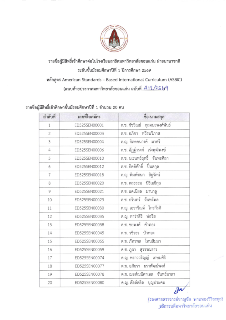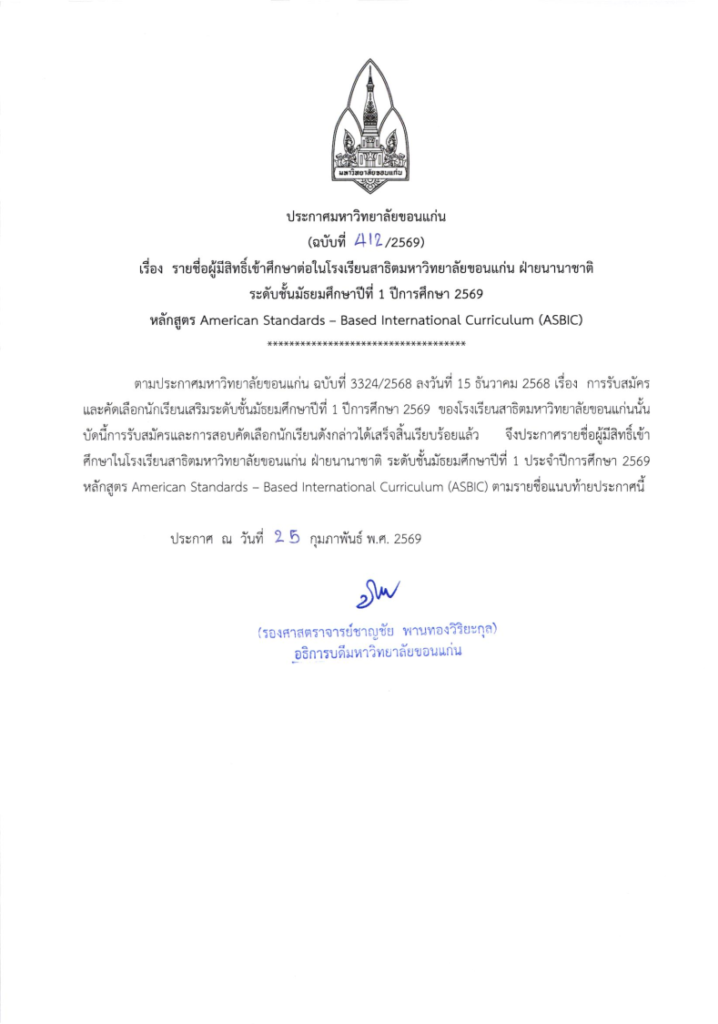 ประกาศรายชื่อผู้มีสิทธิ์เข้าศึกษาต่อในโรงเรียนสาธิตมหาวิทยาลัยขอนแก่น ฝ่ายนานาชาติ ระดับชั้นมัธยมศึกษาปีที่ 1 ประจำปีการศึกษา 2569 #KKUIDSGrade7