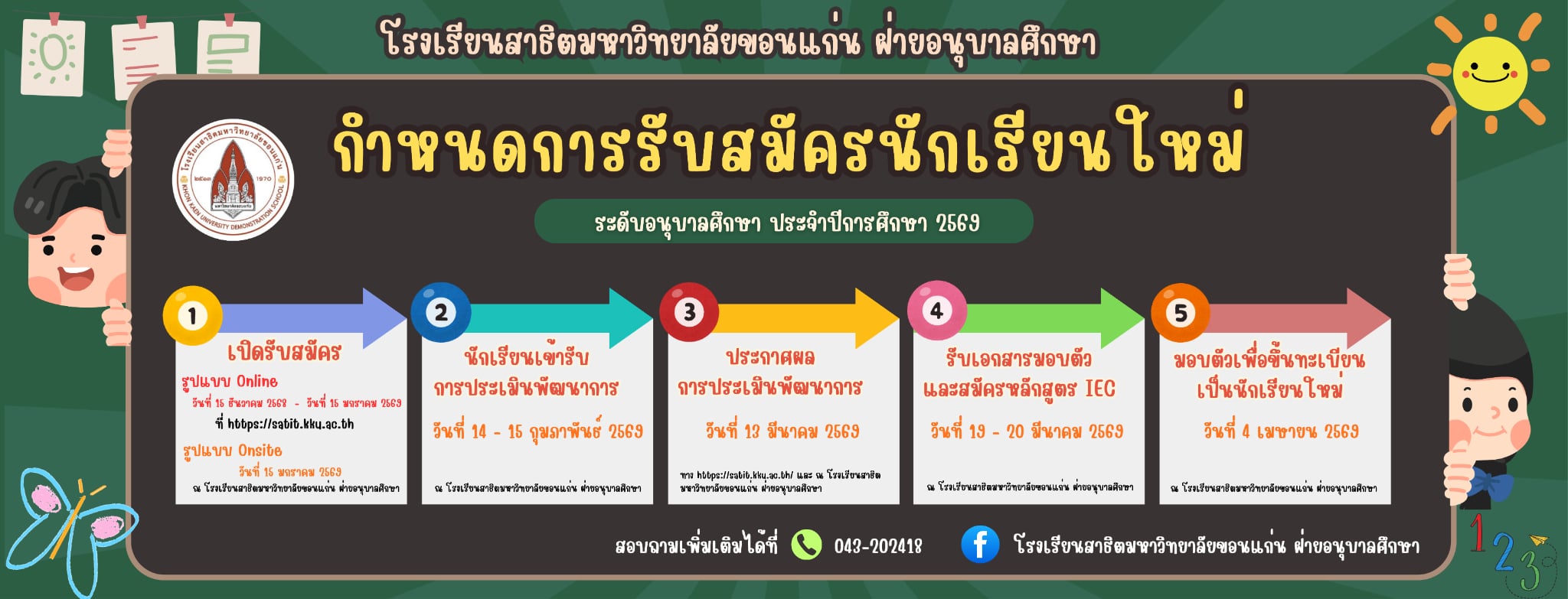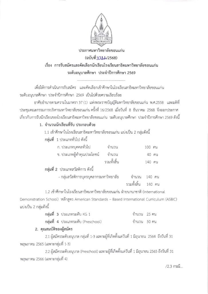 โรงเรียนสาธิตมหาวิทยาลัยขอนแก่น เปิดรับสมัครนักเรียนใหม่ ระดับอนุบาลศึกษา ประจำปี 2569